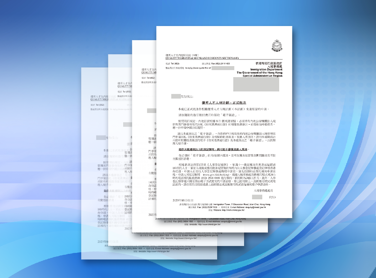 恭贺我司H先生,一家四口,香港优才正式获批