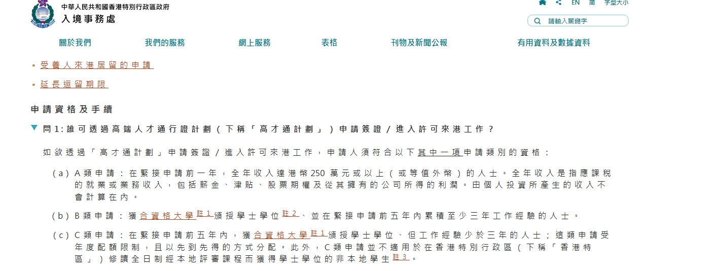 “高才通”计划接受三类合资格人士的申请:
